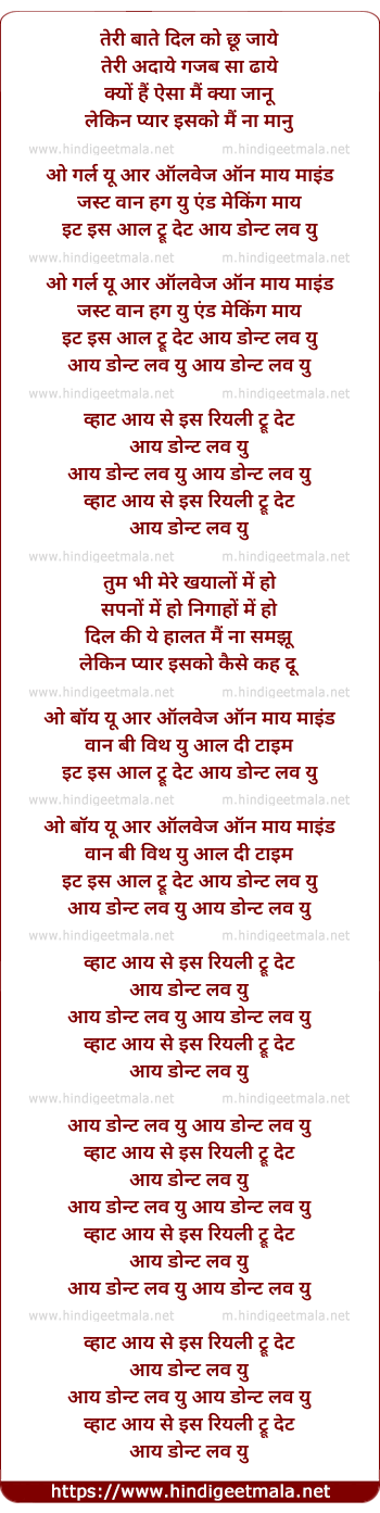 Lyrics of I Dont Luv U (Title Song) - Club Version - तेरी बाते दिल को छू जाये