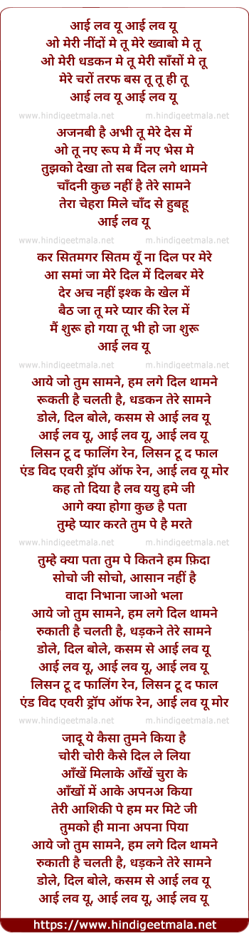 Lyrics of I Love You I Love You - आई लव यू आई लव यू