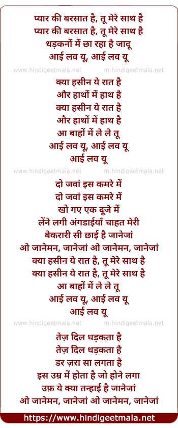 Lyrics of I Luv U - प्यार की बरसात है, तू मेरे साथ है