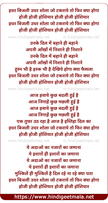Lyrics of Idhar Bijli Udhar Shola - इधर बिजली उधर शोला