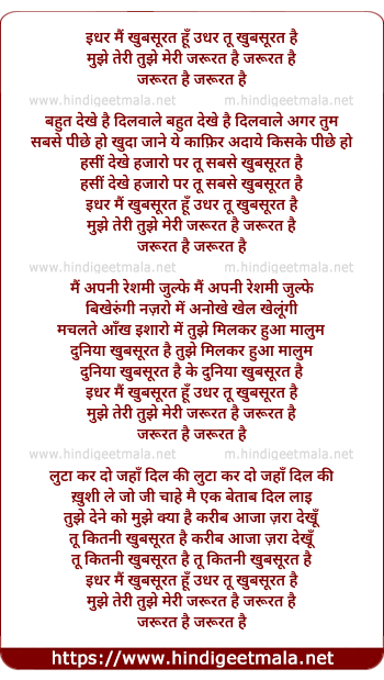 Lyrics of Idhar Mai Khubsurat Hu Udher Tu Khubsurat Hai - इधर मैं खुबसूरत हूँ उधर तू खुबसूरत है
