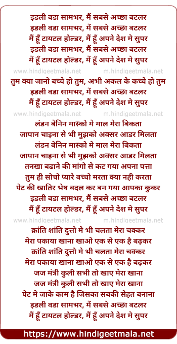 Poetic Translation - Lyrics of Idli Wada Sambhar Me Sabse Achcha - इडली वडा सामभर में सबसे अच्छा