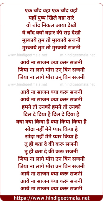 Lyrics of Ik Chand Waha Ik Chand Yaha - एक चाँद वहा इक चाँद यहाँ
