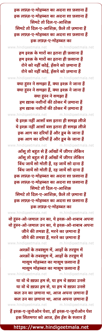 Lyrics of Ik Labz-Ae-Muhabbat Kaa - इक लफ़्ज़-ए-मोहब्बत का