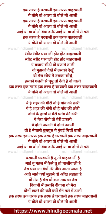 Lyrics of Ik Taraf Hai Gharwali - इक तरफ है घरवाली