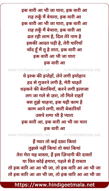 Ik Vaari Aa Bhi Ja Yaara - इक वारि आ भी जा यारा