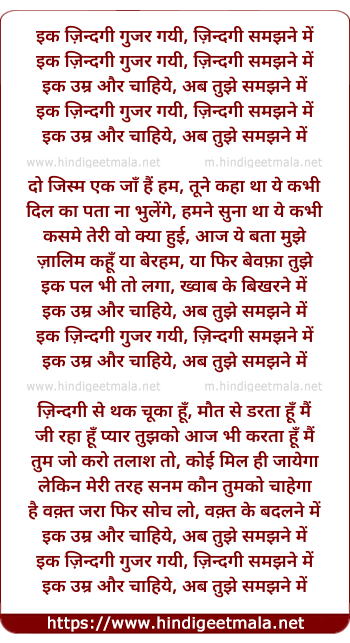 Lyrics of Ik Zindagi Guzar Gayi (Male) - इक ज़िन्दगी गुजर गयी
