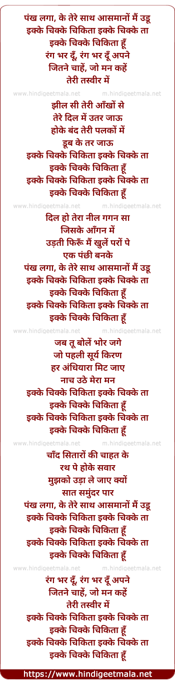 Lyrics of Ikke Chikke Chikeeta - पंख लगा, के तेरे साथ आसमानों मैं उडू