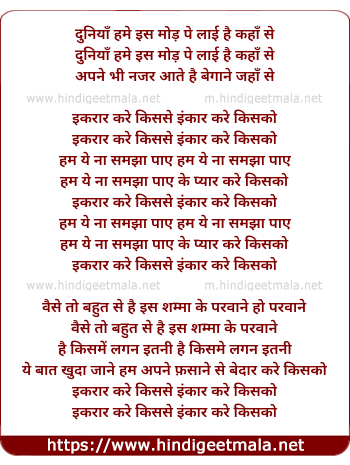 Lyrics of Ikrar Kare Kis Se - इकरार करे किस से