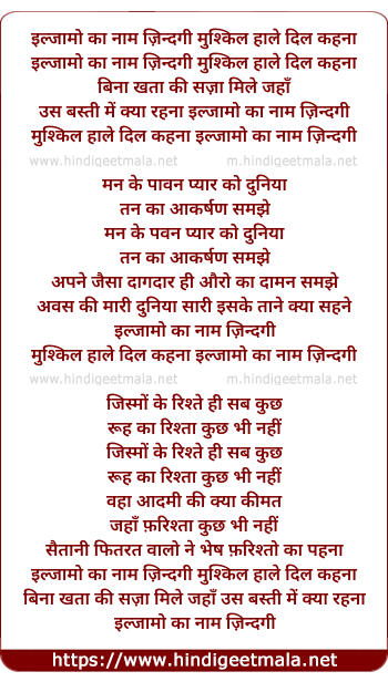 Lyrics of Ilzaamo Ka Naam Zindagi, Mushkil Haale Dil Kehna - इल्जामो का नाम ज़िन्दगी, मुश्किल हाले दिल कहना