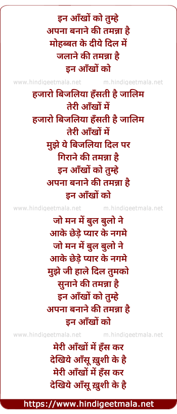 Lyrics of In Ankho Ko Tumhe Apna Banane Ki Tamanna Hai - इन आँखों को तुम्हे अपना बनाने की तमन्ना है