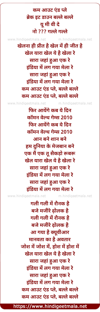 Lyrics of India Melaa - कम आउट एंड प्ले