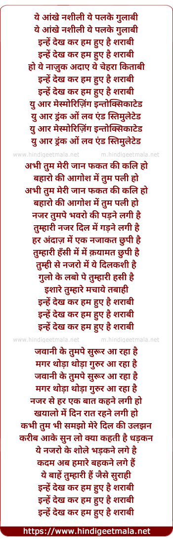 Lyrics of Inhen Dekh Kar Ham Hue Hai Sharabi - इन्हें देख कर हम हुये है शराबी