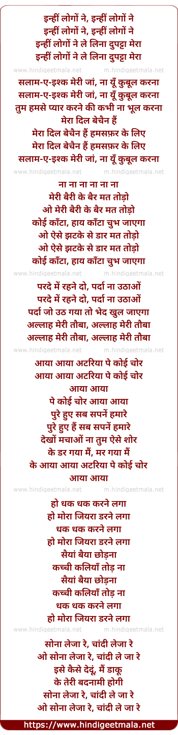 Lyrics of Inhi Logo Ne Le Liya Dupatta (Parody) - इन्हीं लोगों ने, इन्हीं लोगों ने