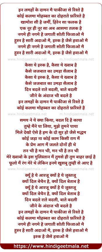 Lyrics of Inn Lamho Ke Daaman Mein - इन लम्हों के दामन में