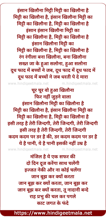 Lyrics of Insaan Khilona Mitti Ka - इंसान खिलौना मिट्टी का