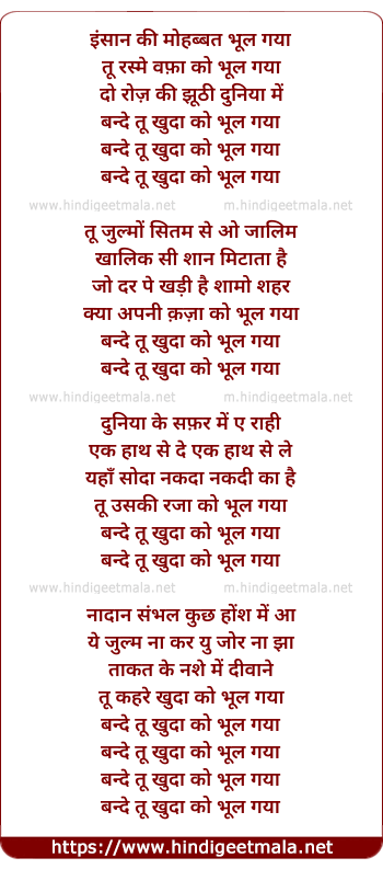 Lyrics of Insan Ki Mohabbat Bhul Gaye - इंसान की मोहब्बत भूल गया