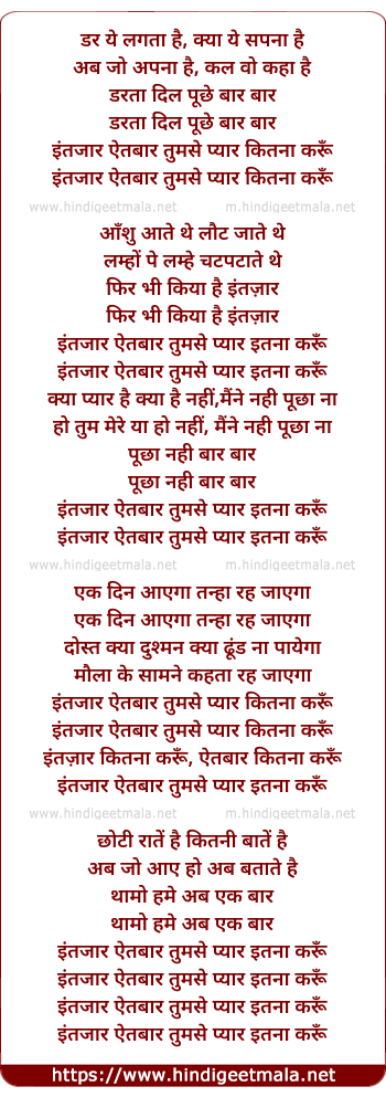 Lyrics of Intejar Aitbar Tumse Pyar Itna Karu - इंतजार ऐतबार तुमसे प्यार इतना करूँ