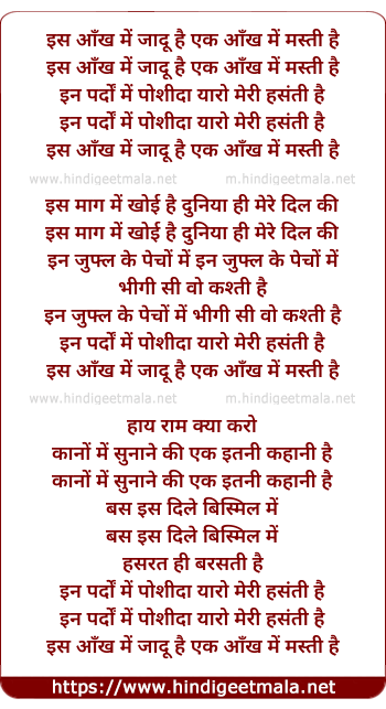 Lyrics of Is Aankh Me Jadu Hai - इस आँख में जादू है एक आँख में मस्ती है