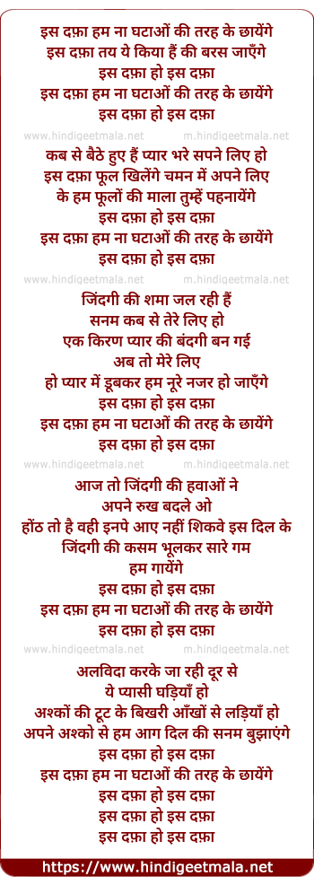 Poetic Translation - Lyrics of Is Dafaa - इस दफ़ा