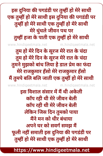 Poetic Translation - Lyrics of Is Duniya Ki Pagadandi Par - इस दुनिया की पगडंडी पर तुम्हीं हो मेरे साथी