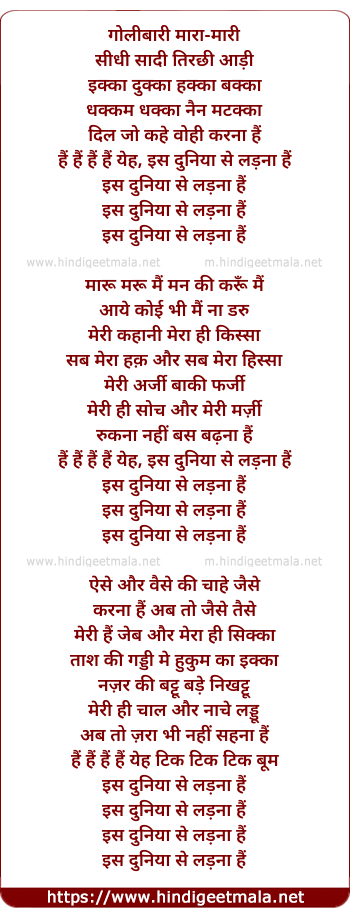 Lyrics of Is Duniya Se Ladna Hai - इस दुनिया से लड़ना है