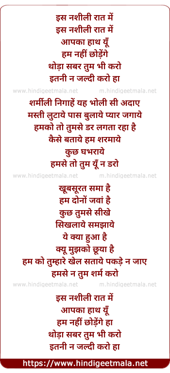 Lyrics of Is Nashili Raat Me