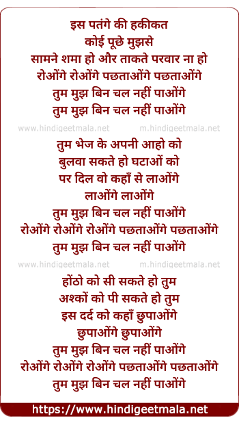 Lyrics of Is Patange Ki Haqiqat - इस पतंगे की हकीकत