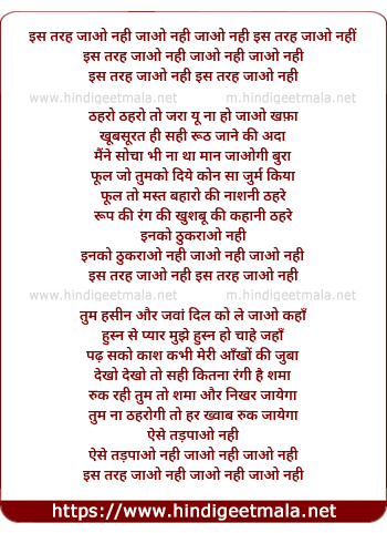Lyrics of Is Tarah Jao Nahi Jao Nahi - इस तरह जाओ नही जाओ नही
