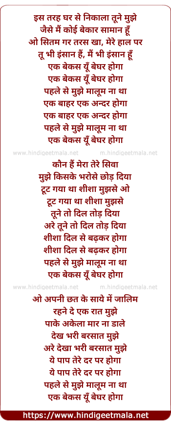 Lyrics of Is Tarah Tune Ghar Se Nikala Mujhe - इस तरह तूने घर से निकाला मुझे