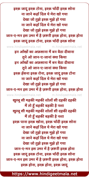 Lyrics of Ishk Jadu Ishk Tona, Ishk Chandi Ishk Sona - इश्क़ जादू इश्क़ टोना, इश्क़ चाँदी इश्क़ सोना