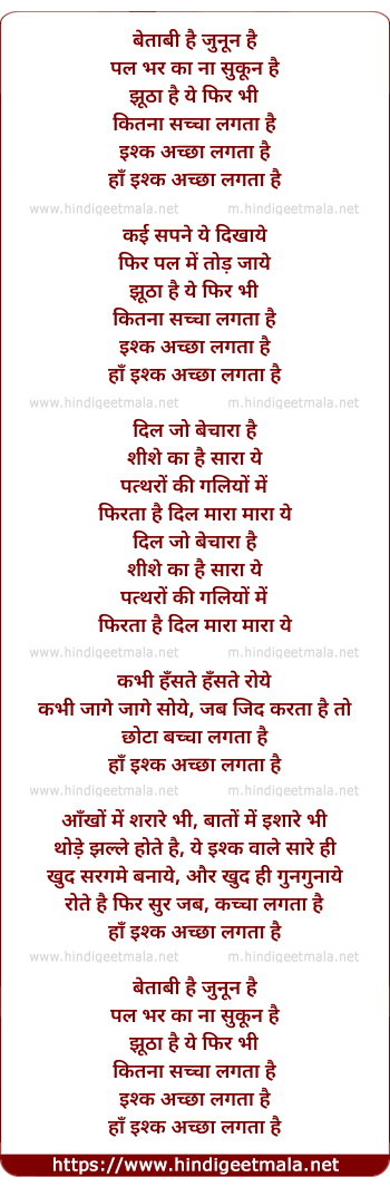 Lyrics of Ishq Accha Lagta Hai - इश्क अच्छा लगता है