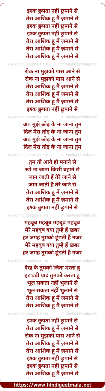 Lyrics of Ishq Chupta Nahi - इश्क छुपता नहीं