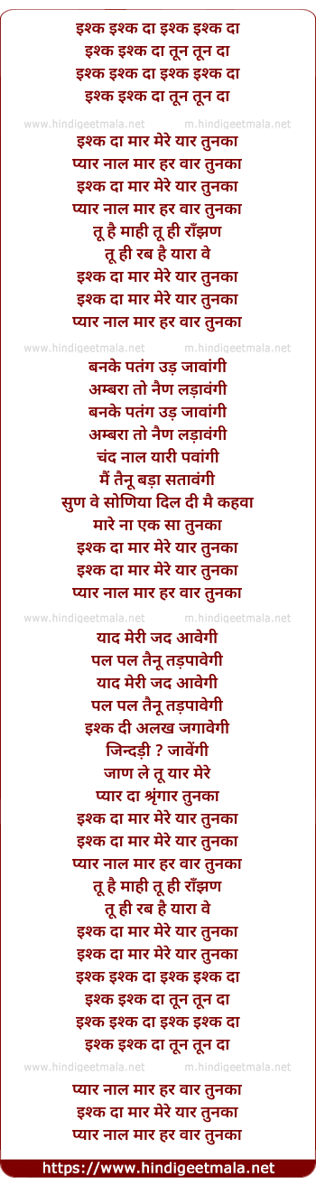 Lyrics of Ishq Daa - इश्क इश्क दा इश्क इश्क दा