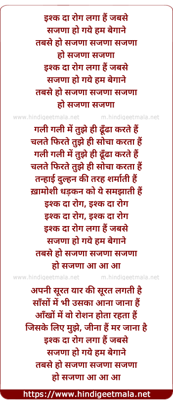 Lyrics of Ishq Daa Rog - इश्क दा रोग लगा हैं जबसे