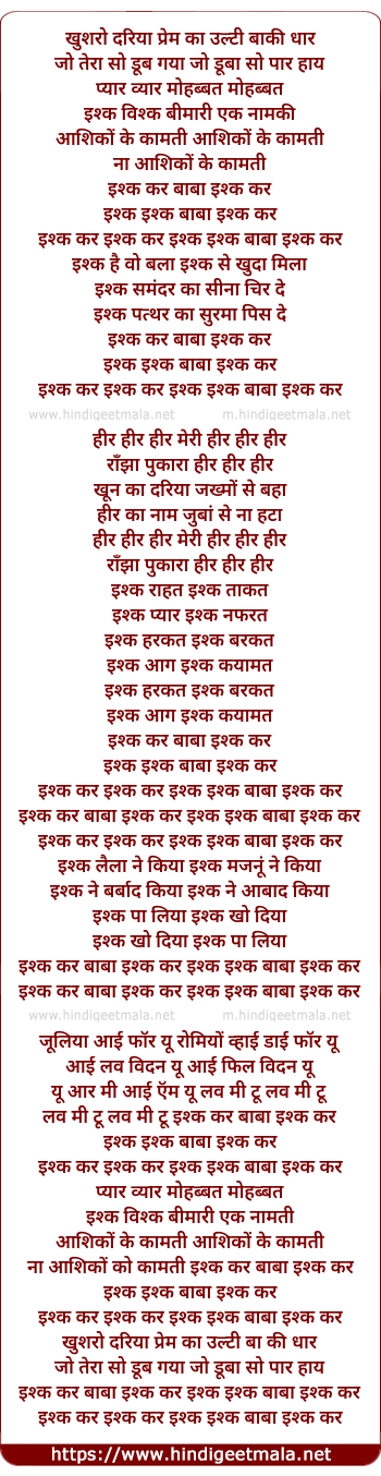 Lyrics of Ishq Kar Baba - इश्क कर बाबा