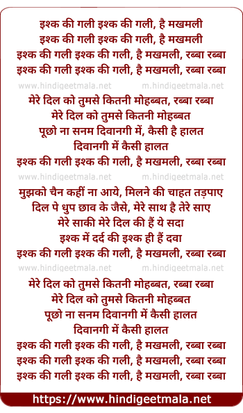 ishk ki gali ishk ki gali, hai makhmali, rabba rabba
