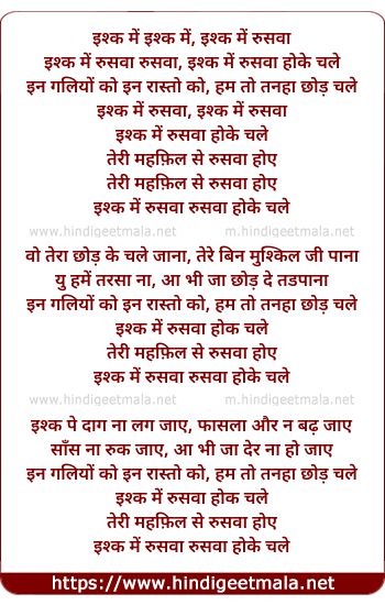Lyrics of Ishq Me Ruswaa (Remix) - इश्क में इश्क में, इश्क में रुसवा