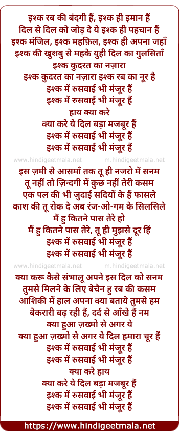 Lyrics of Ishq Mein Ruswai (Male) - इश्क रब की बंदगी हैं, इश्क ही इमान हैं