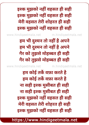 Lyrics of Ishq Mujhko Nahi Wehshat Hi Sahi - इश्क मुझको नहीं वहसत ही सही