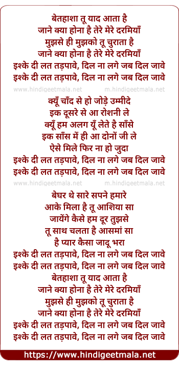 ishqe di lat tadpave, dil na lage jab dil lag jave