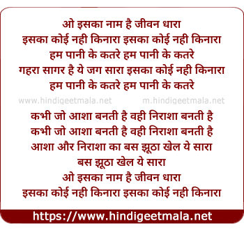 Lyrics of Iska Naam Hai Jeevan Dhara Iska Koi Nahi Kinara - इसका नाम है जीवन धारा इसका कोई नही किनारा