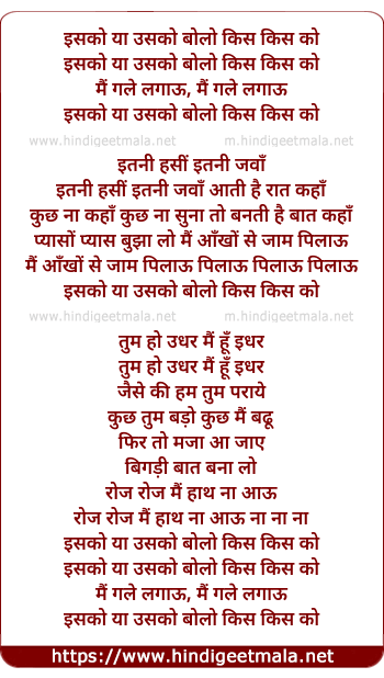 Lyrics of Isko Ya Usko, Bolo Kis Kis Ko - इसको या उसको, बोलो किस किस को