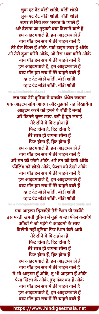 Lyrics of Itemwaale - आईटमवाले