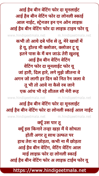 Lyrics of I Have Been Waiting For The Moonlight, Kabhi Toh Aaye Dabe Paaon - आई हैव बीन वेटिंग फोर दा मूनलाईट, कभी तो आये दबे पाँव
