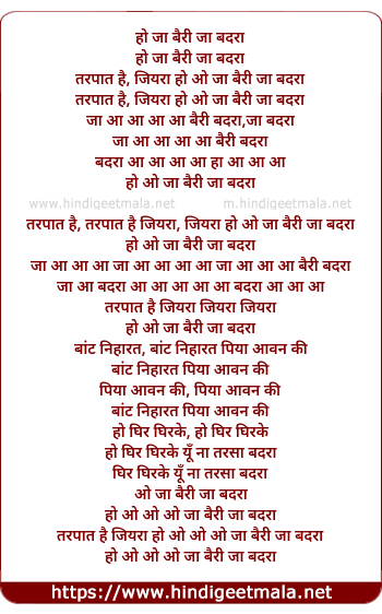 Lyrics of Ja Bairi Ja Badra, Tarpat Hai Jiyara Ho - जा बैरी जा बदरा, तरपत है जियरा हो