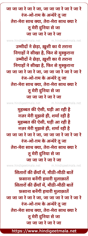 Lyrics of Ja Ja Ja Re Ja Re Ja - जा जा जा रे जा रे जा