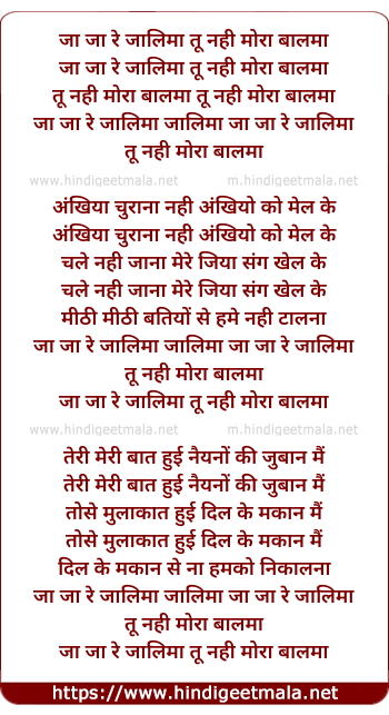 Lyrics of Ja Ja Re Jalima - जा जा रे जालिमा