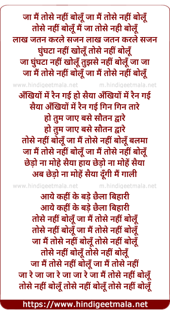 Lyrics of Ja MainTose Nahi Bolu - जा मैं तोसे नहीं बोलूँ