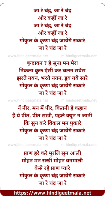 Lyrics of Ja Re Chandra Aur Kahi Ja Re - (जा रे चंद्र, जा रे चंद्र